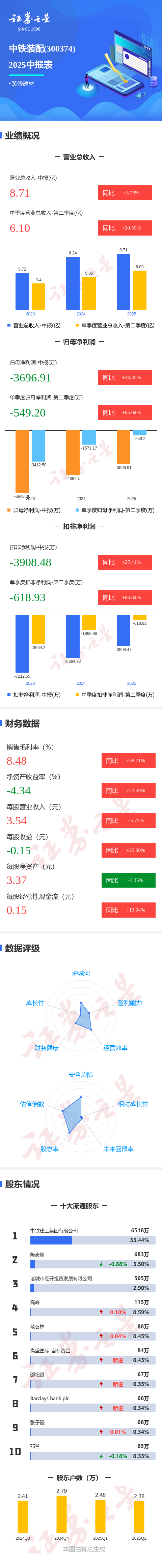 图解中铁装配中报: 第二季度单季净利润同比增长65.04%